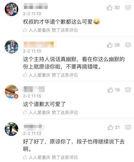 朱廣權的段子式道歉方式也是巧妙的化解了矛盾,不少的重慶人也都表示算了算了,看在央視主播都這么幽默的份兒上,我不找你扯皮了。