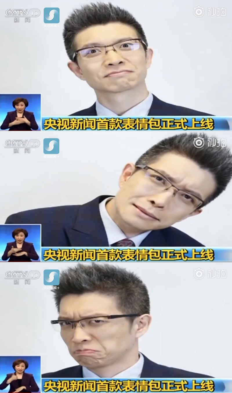 先奉上一組標準16比9寬屏系列表情包供大家欣賞,是的,你沒看錯,左上角顯示CCTV,這組表情包正是截取于昨天一身正氣的央視新聞里,主人公就是央視當家男主持人朱廣權。來自央視新聞的畫風突變,是不是給了你一個猝不及防?
