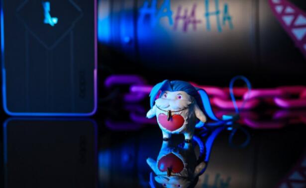而飛彈包裝盒中還有著充滿金克絲元素的配件,例如手機保護殼的面附著著粉色“Jinx”字樣,電源適配器則是加持著“超究極死神飛彈”。飛彈包裝盒中還有個小彩蛋,找到之后就能夠得到一只已經變成魄羅的金克絲。除此之外,還有金克絲脖子上同款的子彈項鏈,打開之后它也可以變成卡針,兼具了美感與實用性。