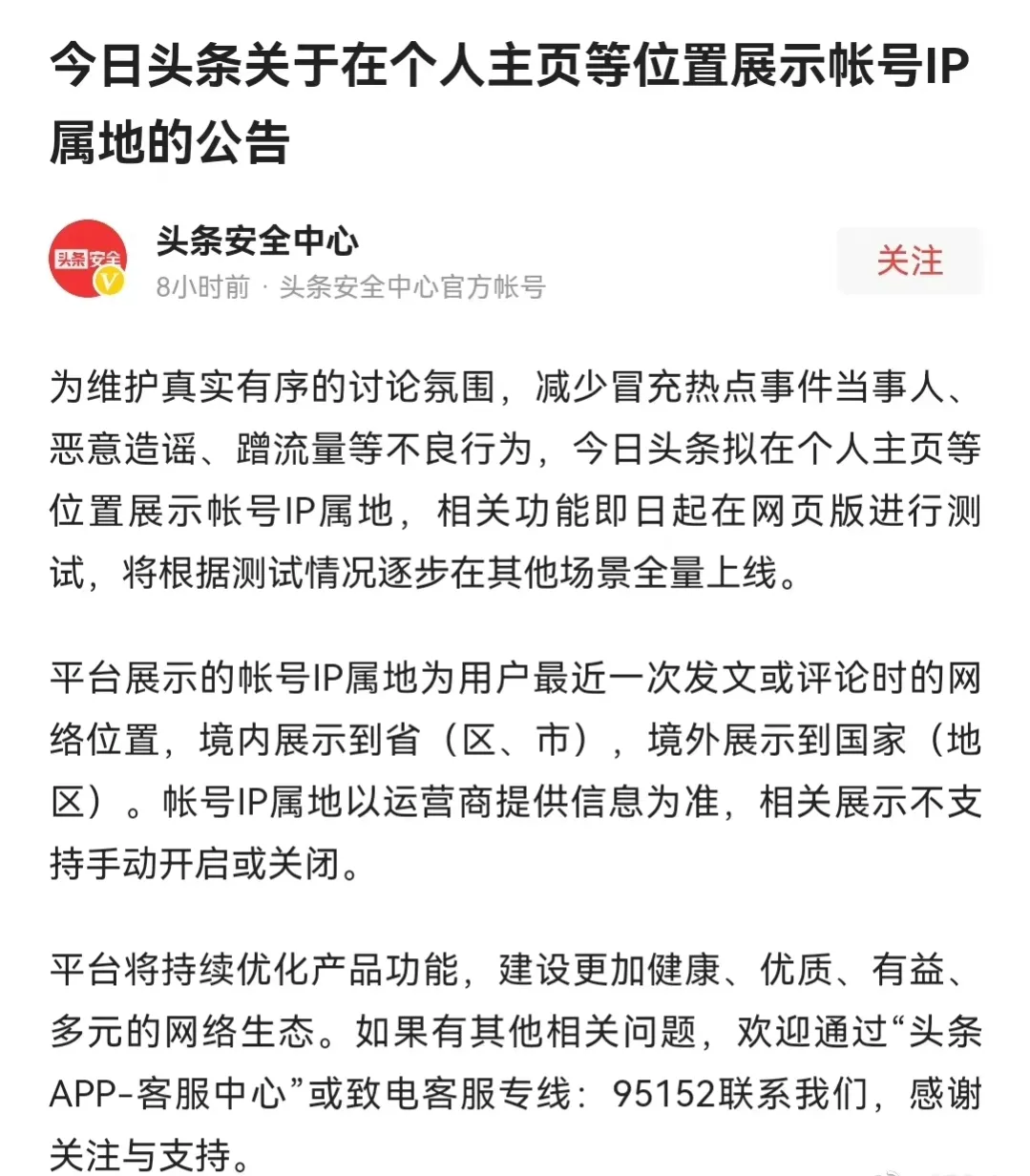 頭條將將展示賬號IP屬地,這個措施好!這下一部分隱藏在賬號背后的那些魑魅魍魎就要原地現形了。