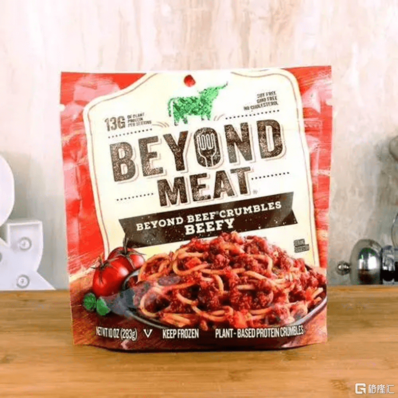 于是,眾多公司開始試水,Beyond Meat從中先走了出來,它成立于2009年,聚焦植物性肉制品服務,旗下產品包括The Beyond Burger、Beyond Sausage等,比爾蓋茨、小李子等名人也紛紛對其投資。十年之后,2019年5月Beyond Meat登陸納斯達克,發行價25美元,首日股價暴漲163%,十分搶眼。