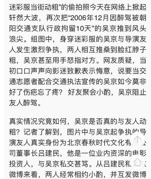 不過,就在這件事之后,吳京某次和友人一起外出吃飯時竟然還因為不想對方酒后駕車而發生了爭執,隨后被記者偷拍到,還鬧了一個兩人大打出手的笑話,不得不說吳京這次被交警處分應該是知道了事情的嚴重性了吧!