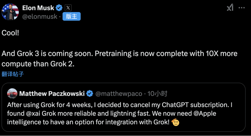 馬斯克宣布:Grok 3已完成預(yù)訓(xùn)練,計(jì)算量大幅提升10倍!