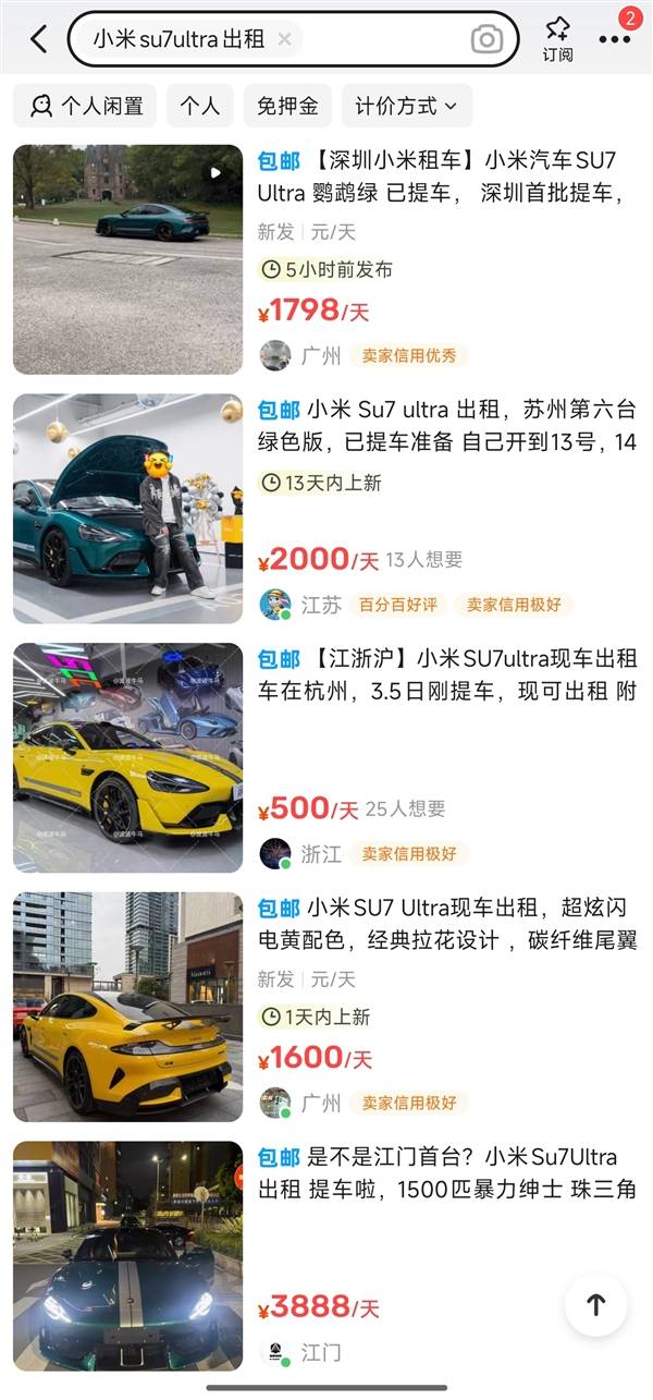 小米SU7 Ultra不僅以其卓越的性能贏得了車主的喜愛,還意外地引發了租賃市場的熱潮。據二手交易平臺的數據顯示,不少車主和商行紛紛將這款車型掛出出租,而單日租賃價格普遍高達千元以上。這一價格水平,甚至能與法拉利、蘭博基尼等超豪華跑車的租賃費用相媲美。