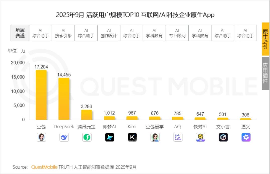 但隨著月之暗面暫緩投流,用戶也開始持續流失。QuesMobile數據顯示,2025年9月,Kimi的月活規模僅為967萬,而豆包和Deepseek則已經破億,兩者的量級差距被迅速拉開。