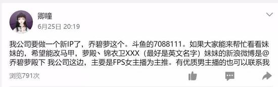 而在6月份的時候,其曾發(fā)布過一則動態(tài),表示公司將包裝一個名為“喬碧蘿殿下”的ID。